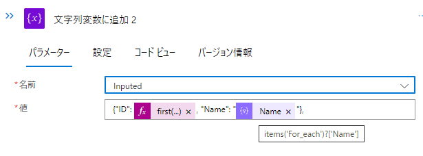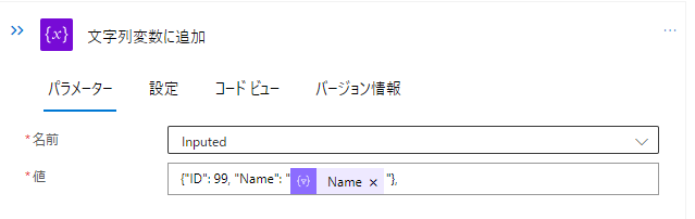 3-3. の処理を一部改良します。改良するのは2つある「文字列変数に追加」アクションと、「JSON の解析」アクションです。