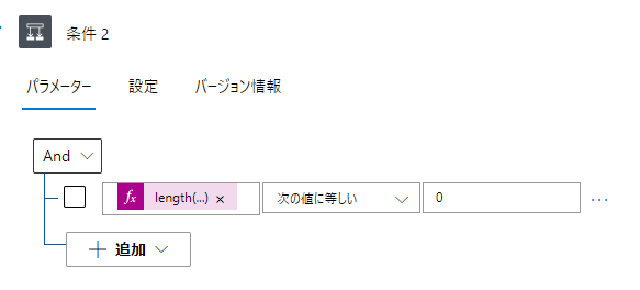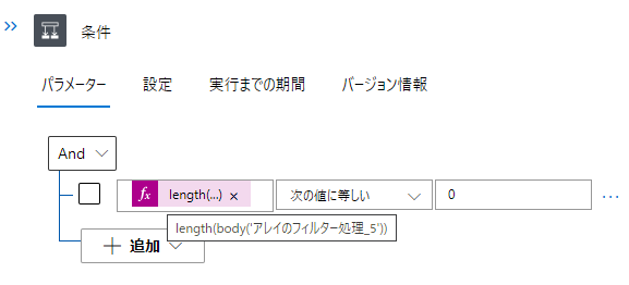 そして、フィルタ処理した結果、レコード数が0かどうか(0、つまり見つからなかったら true)を判定します。