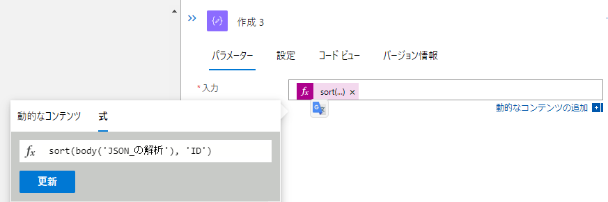 first(body('アレイのフィルター処理_5'))?['SortId']