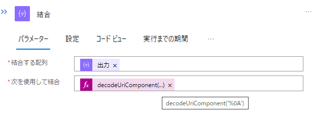 text の値には、3-5.の左側の結合処理の結果を最初に、右側の結合処理の結果を次に設定します。