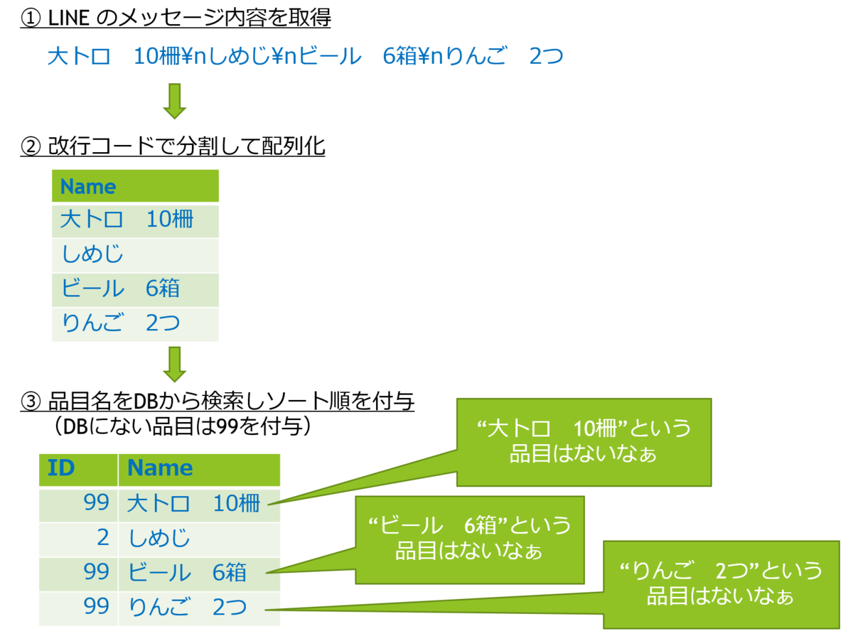 4-1. 改良点① LINE から受信した品目をテーブル化